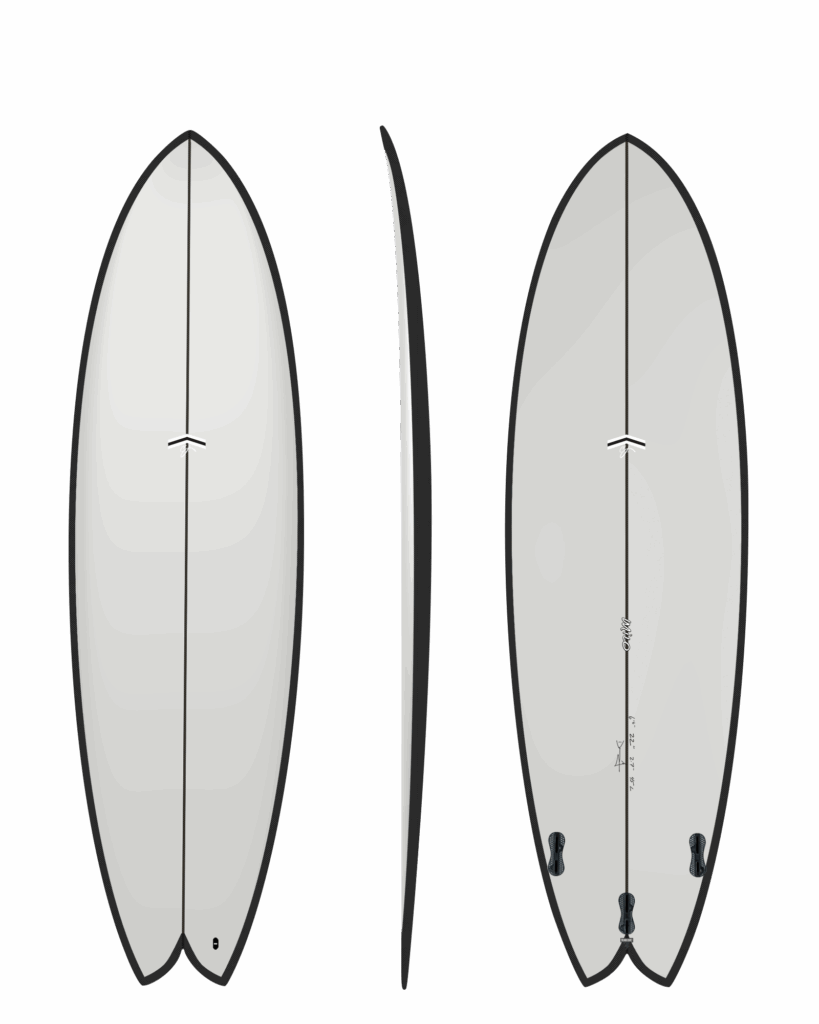 The Milo is our performance fish, blending modern rails with a single-to-double concave bottom and a flat rocker profile. It’s one of the most versatile boards in our range—ideal for drawing tighter lines and increasing maneuverability. Ride the larger size if you’re stepping down from a longboard. (Concept designed by CJ x Darius Gross)